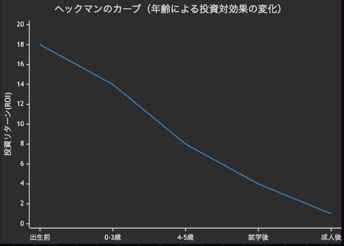まず大前提として、 就学前(小学校に入る前)への投資が、人生で最もリターンが高い (https://heckmanequation.org/) という考え方です。
